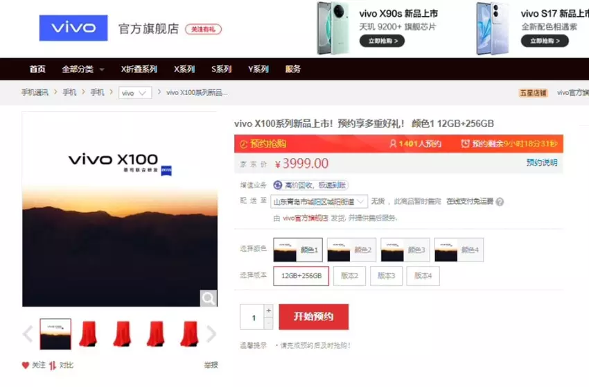 Het nieuwe vlaggenschip smartphone vivo X100 verscheen op de website van de Chinese retailer JD.