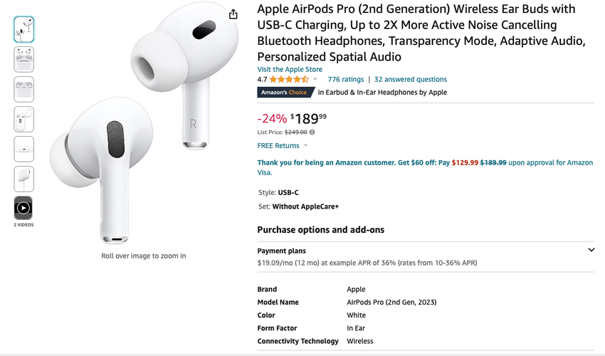 Beste prijs: AirPods Pro 2 met USB-C op Amazon met € 60 korting