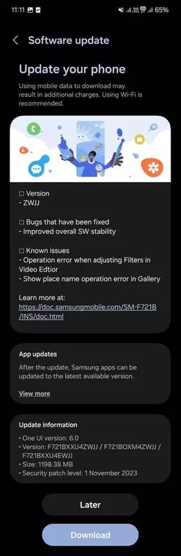 De update is uitgebracht onder de naam One UI 6.0 Beta 2 en buildnummer F721BXXU4ZWJJ. De firmware weegt 1,2 GB. Deelnemers aan het bètatestprogramma in India hebben de update al ontvangen. In de VS en Europa zal het systeem de komende dagen beschikbaar zijn.