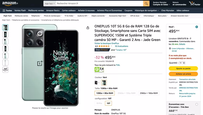OnePlus 10T is verkrijgbaar op Amazon met een korting van 234 euro
