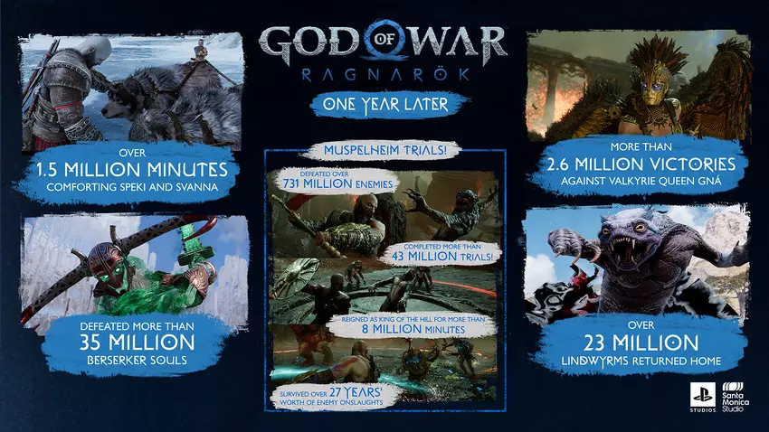 PlayStation en Santa Monica blijven de eerste verjaardag van God of War: Raganrok vieren. Eerst hebben de ontwikkelaars een aantal pre-release bugs en de breakdown van Kratos vrijgegeven, en nu hebben ze spelersstatistieken en meer gedeeld.
