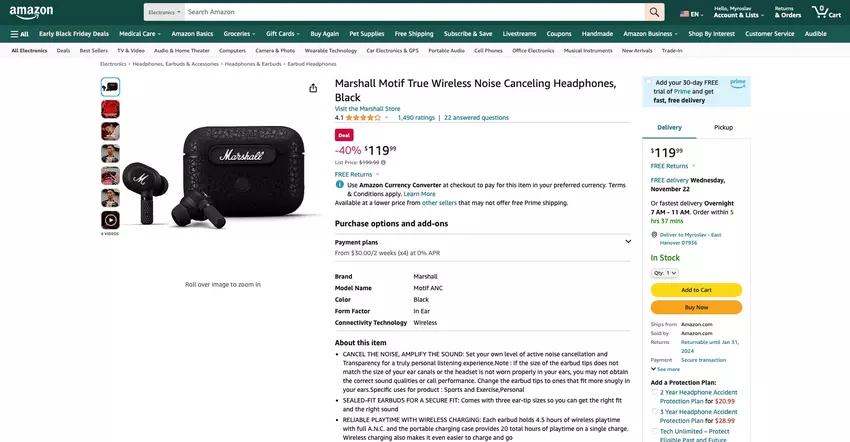 Marshall Motif op Amazon: TWS-hoofdtelefoon met ANC, waterbescherming en een batterijlevensduur tot 20 uur voor $80 korting