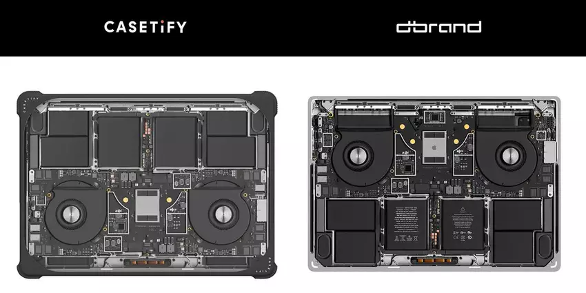 Dbrand produceert accessoires met dit ontwerp in samenwerking met blogger Zack Nelson, beter bekend als JerryRigEverything. Maar onlangs viel het hen op dat de producten van Casetify verdacht veel op hun assortiment leken.