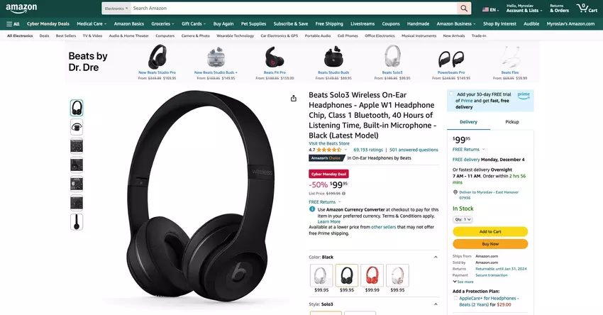 $100 korting: Beats Solo 3 kan worden gekocht op Amazon Cyber Monday uitverkoop voor $99
