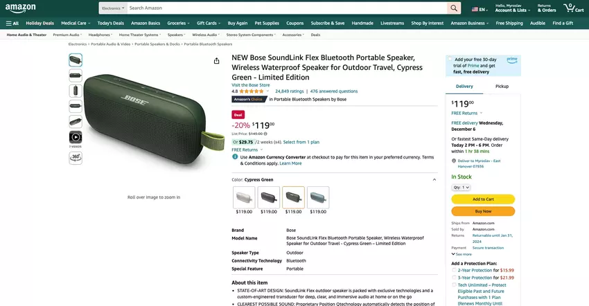 De Bose Soundlink Flex met IP67-bescherming en een batterijlevensduur tot 12 uur is verkrijgbaar bij Amazon voor $ 119 (korting van $ 30).
