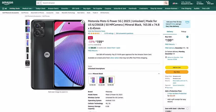 Moto G Power 5G (23) op Amazon: 120Hz scherm, MediaTek Dimensity 930 chip en 5000 mAh batterij met $100 korting