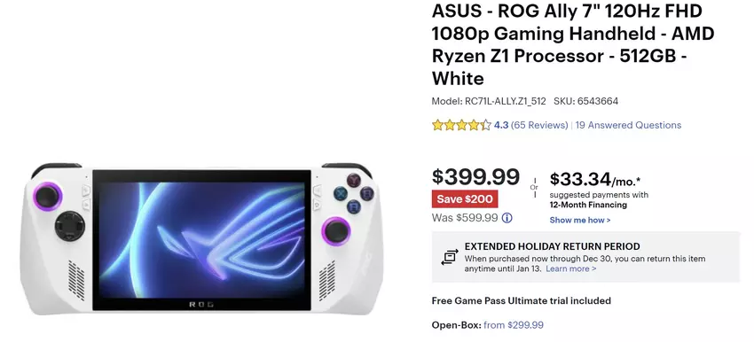 De lancering van een nieuwe versie van Steam Deck met OLED-scherm heeft het lot van de ASUS ROG Ally niet bepaald beïnvloed. Misschien dat een nieuwe prijsverlaging de situatie zal verbeteren. BestBuy biedt de ASUS ROG Ally aan voor $400. De winkel verkoopt ook consoles in open doos voor $300.