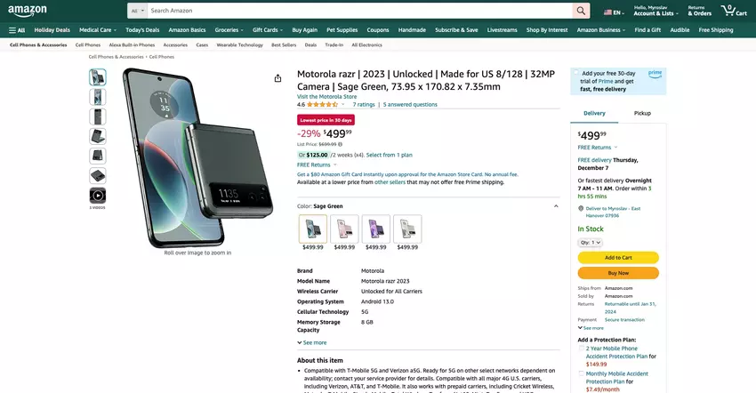 De beste prijs: Motorola Razr 2023 kan worden gekocht op Amazon met een korting van $200.