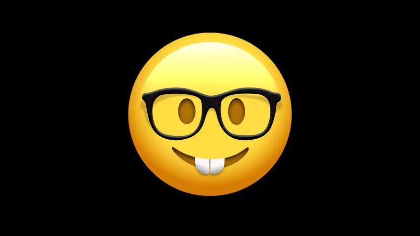De emoji in kwestie heet de "nerd" emoji. Het toont een emoji met een bril, een glimlach en uitstekende voortanden.