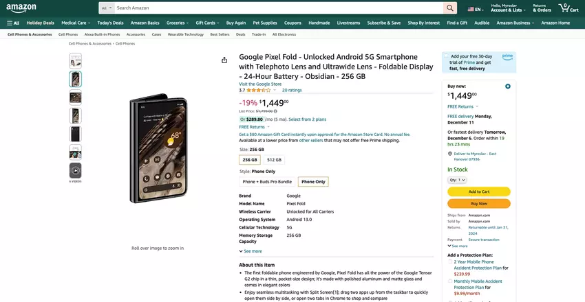 Google Pixel Fold met 256 GB opslagruimte verkrijgbaar op Amazon met $350 korting