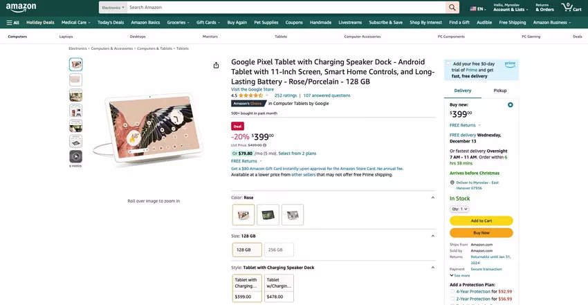 - Google Pixel Tablet, 128 GB - check price on amazon.