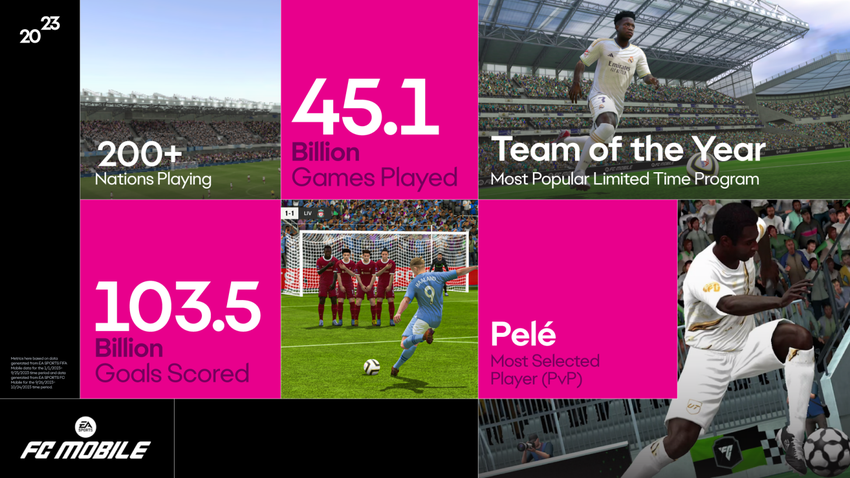 Er werden meer dan 45 miljard wedstrijden gespeeld in FC Mobile en er werden 103,5 miljoen doelpunten gemaakt.