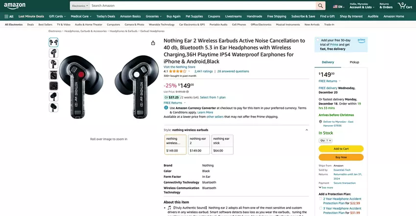 Aanbieding van de dag: Nothing Ear 2 op Amazon met $50 korting