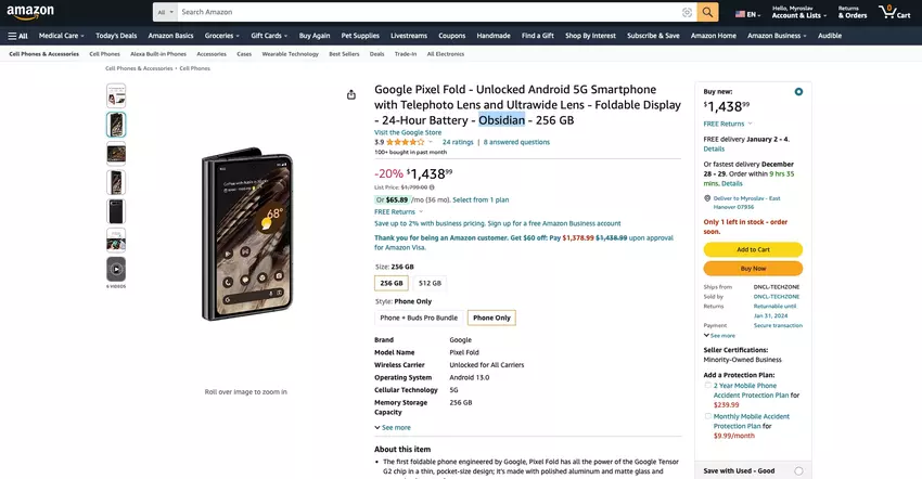 De beste prijs: Google Pixel Fold verkrijgbaar op Amazon voor $361 korting