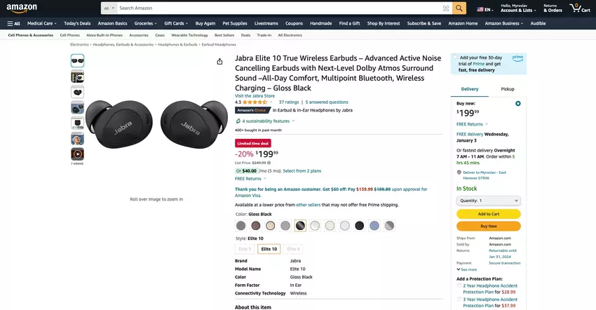 Jabra Elite 10 op Amazon: TWS-hoofdtelefoon met ANC en Spatial Sound voor $50 korting