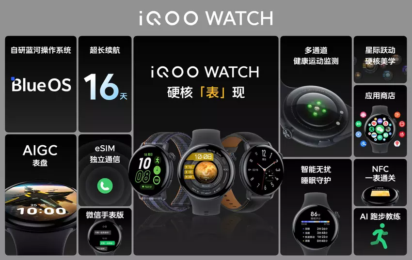 iQOO Watch: smartwatch met AMOLED-scherm, eSIM, SpO2-sensor, NFC en BlueOS aan boord voor $183
