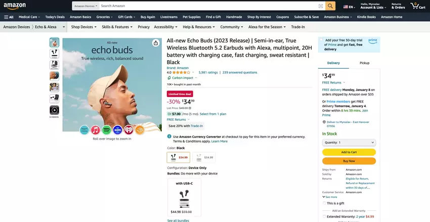 Amazon verkoopt Echo Buds (2023) voor minder dan $49