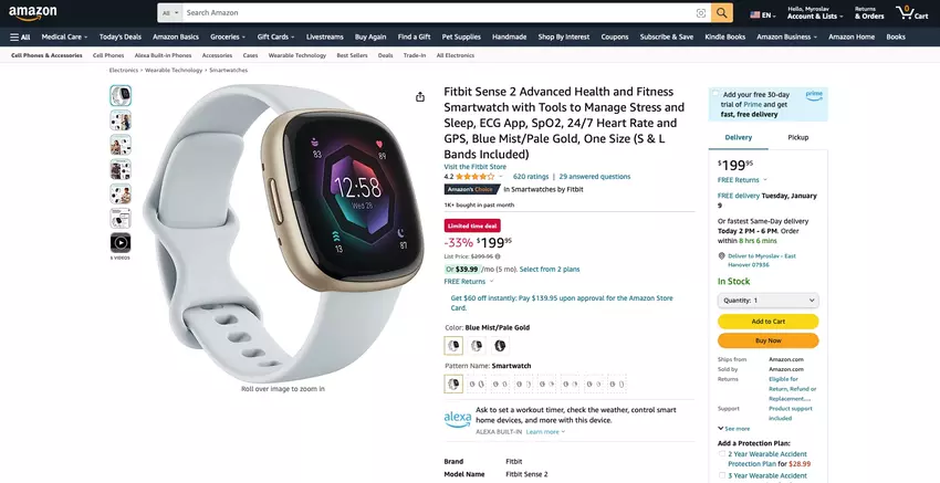 Aanbieding van de dag: Fitbit Sense 2 op Amazon met $100 korting