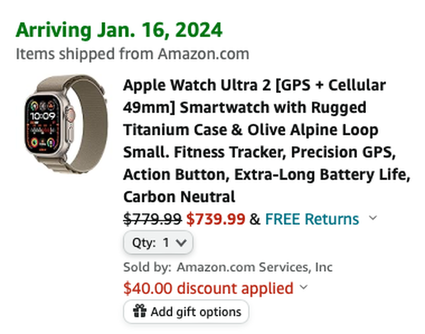 Apple Watch Ultra 2 kan met $40 korting worden gekocht bij Amazon