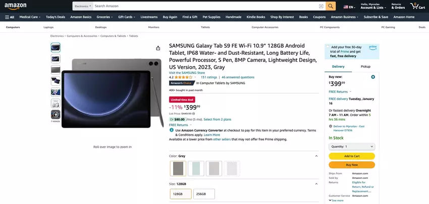 Een korting van $50: Samsung Galaxy Tab S9 FE is op Amazon te koop voor een promotieprijs