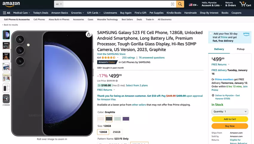 - Samsung Galaxy S23 FE, 128 GB (Graphite, Cream, Mint, Purple) - check price on amazon.