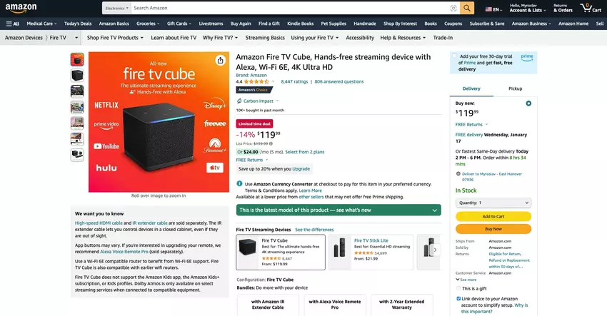 Amazon heeft de prijs van de Fire TV Cube mediaspeler met 4K en Alexa-ondersteuning verlaagd