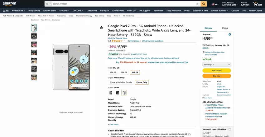 Prijs als Black Friday: de Pixel 7 Pro met 512 GB opslagruimte kan worden gekocht op Amazon voor een gereduceerde prijs van $400