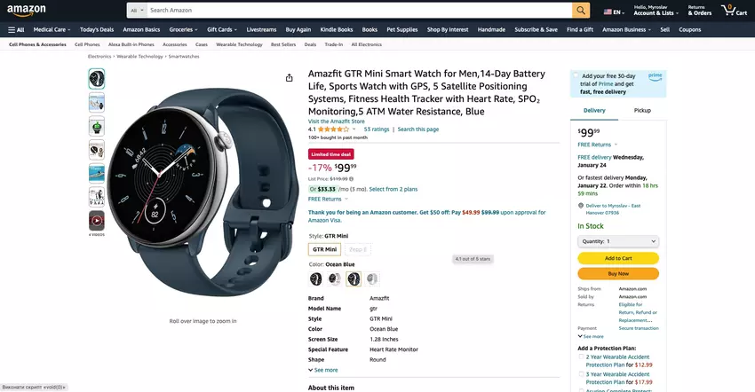 We hebben het over het model Amazfit GTR Mini. Het apparaat is nu te koop op Amazon voor $89.99 $99.99, -10%. Je kunt kiezen uit drie kleuren: Midnight Black, Misty Pink en Ocean Blue.