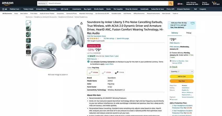 Soundcore Liberty 3 Pro TWS-hoofdtelefoon met ANC, Hi-Res Audio en LDAC-ondersteuning verkrijgbaar op Amazon met $90 korting