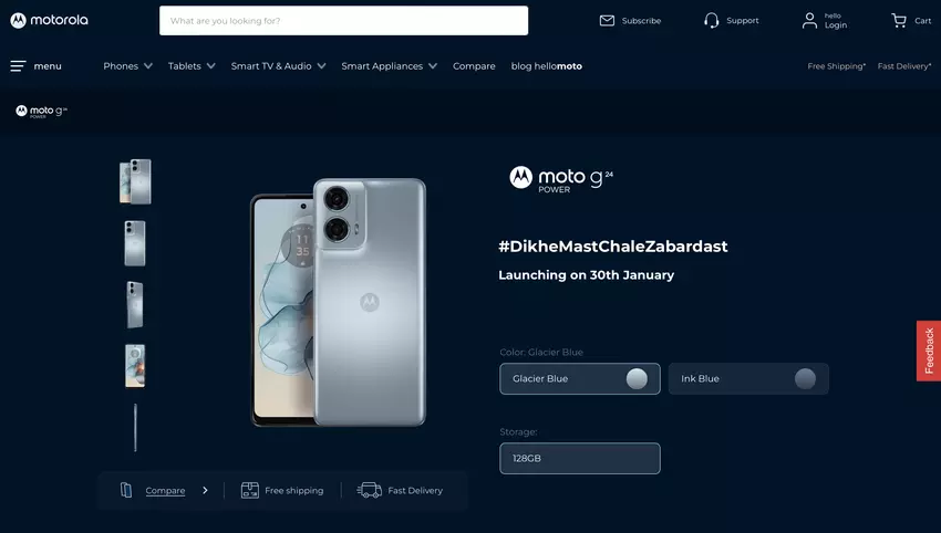 Moto G24 Power verscheen op de officiële Indiase website van de fabrikant. De smartphone wordt op 30 januari getoond. Dat is volgende week dinsdag.