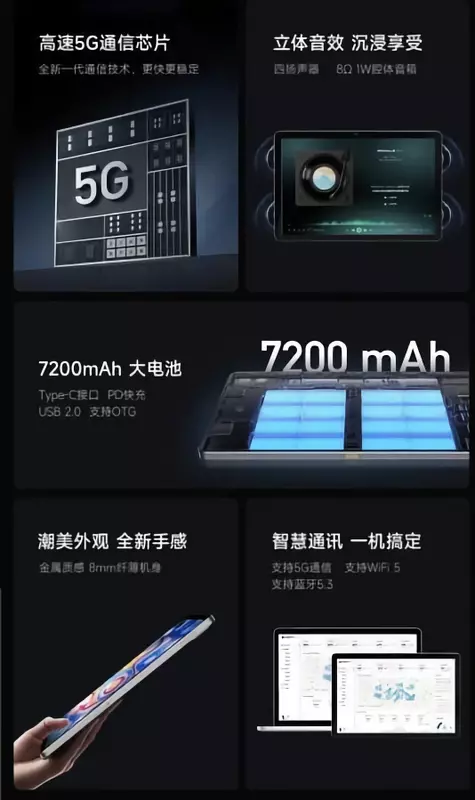 De noviteit heeft een 10,4-inch LCD-scherm met een resolutie van 2K en een helderheid van 280 nits. De gadget draait op een octa-core 6-nanometer MediaTek Kompanio 900T processor in combinatie met 6/8/12 GB RAM en tot 512 GB opslagruimte. De tablet wordt aangedreven door een 7200 mAh batterij. De noviteit heeft een 13 MP + 8 MP hoofdcamera en vier luidsprekers. Lenovo M20 5G wordt geleverd met een 5G-modem en ondersteuning voor WiFi 5.