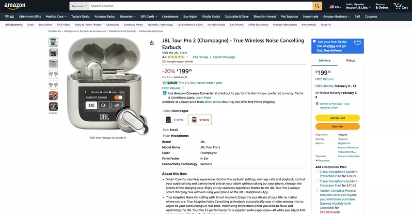 We hebben het over het JBL Tour Pro 2 model voor $124.95 $249.95, -50%. Er zijn twee kleuren beschikbaar: Zwart en Champagne.