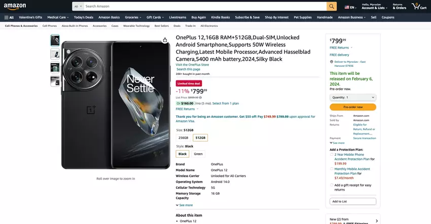 OnePlus 12 met 512 GB opslagruimte is beschikbaar voor pre-order op Amazon met $100 korting