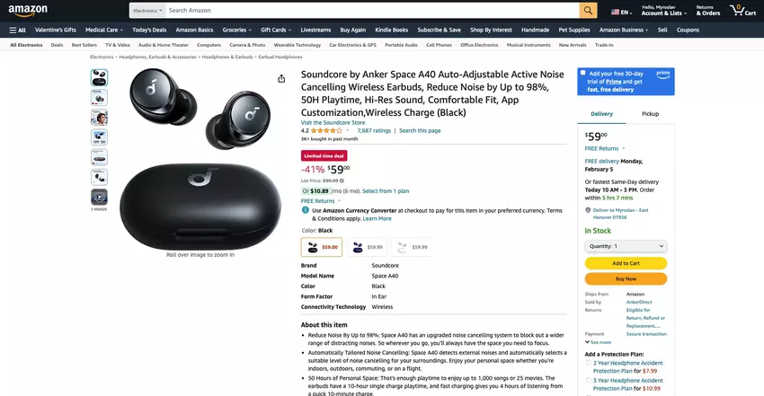 De korting is $40: Soundcore by Anker Space A40 met adaptieve ANC is verkrijgbaar op Amazon voor $59