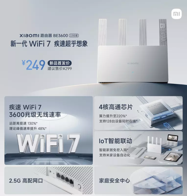 De nieuwigheid kreeg de naam Xiaomi BE 3600. Volgens de fabrikant is dit de goedkoopste router op de markt die de Wi-Fi 7-standaard ondersteunt. Het apparaat kan in China al worden gekocht voor een promotieprijs van 35 dollar. Daarna zal de nieuwigheid iets meer kosten.