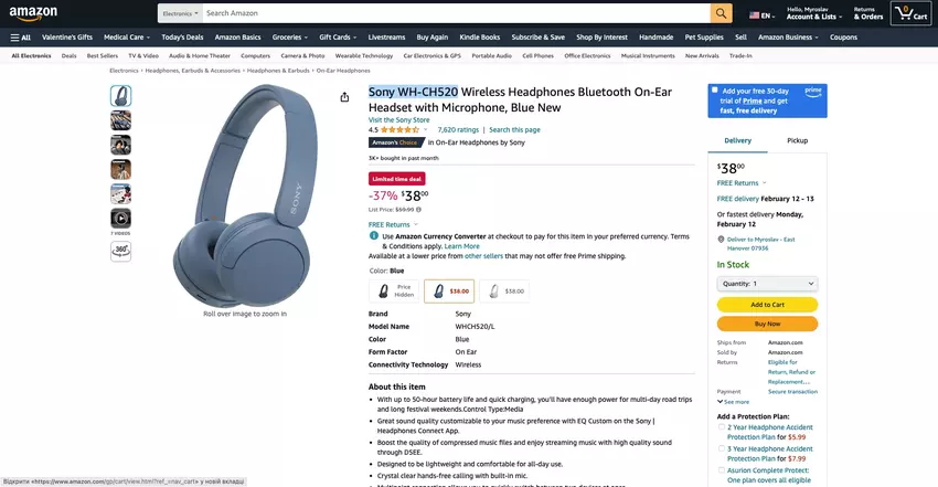 Sony WH-CH520 met een batterijlevensduur tot 50 uur kan worden gekocht op Amazon voor minder dan $40