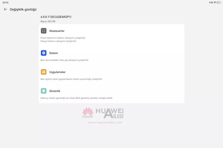 De lijst met wijzigingen bevat verbeterde beveiliging. Daarnaast heeft Huawei het systeem, het opladen van het apparaat en de werking van accessoires (stylus en toetsenbord) geoptimaliseerd.
