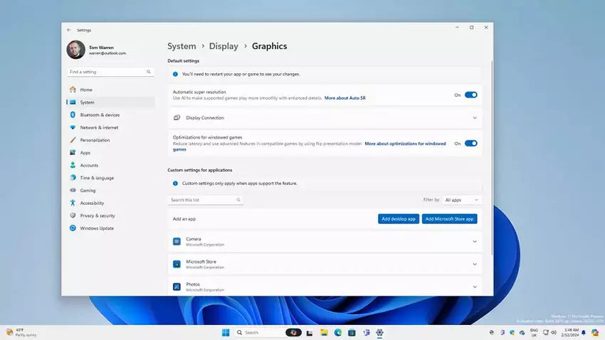 Automatic Super Resolution-technologie - analoog aan DLSS en FSR - werd gedetecteerd in de testversie van Windows 11
