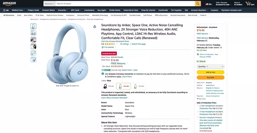 Anker Soundcore Space One op Amazon: draadloze hoofdtelefoon met ANC voor minder dan $80