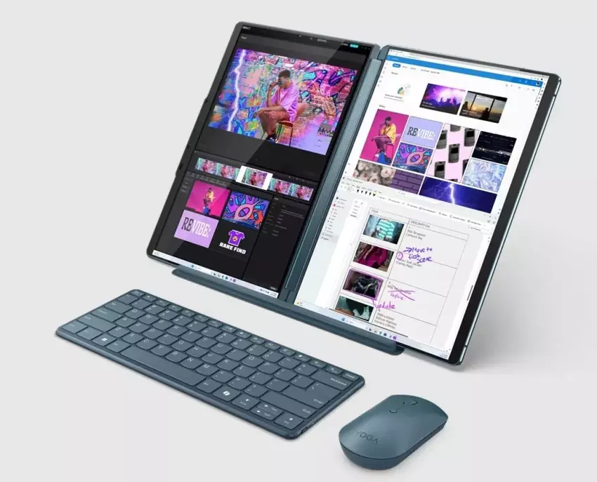 Het model is uitgerust met twee OLED-touchscreens tegelijk, die met elkaar verbonden zijn met behulp van een scharnier. De schermen zijn volledig identiek: 13,3 inch diagonaal, 2,8K resolutie, 400 nits piekhelderheid, 60Hz verversingssnelheid en 100% DCI P3 kleurengamma. Ze ondersteunen het werken met de Lenovo Digital Pen 3 stylus.