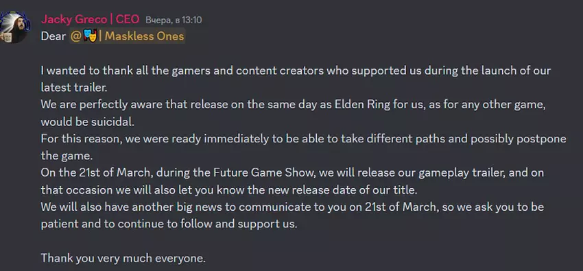 De Italiaanse studio Jyamma Games was van plan om zijn actiespel Enotria: The Last Song uit te brengen op 21 juni 2024. Maar er was een onvoorziene situatie: FromSoftware studio plande de release van de grote add-on Shadow of the Erdtree voor Elden Ring op dezelfde datum.