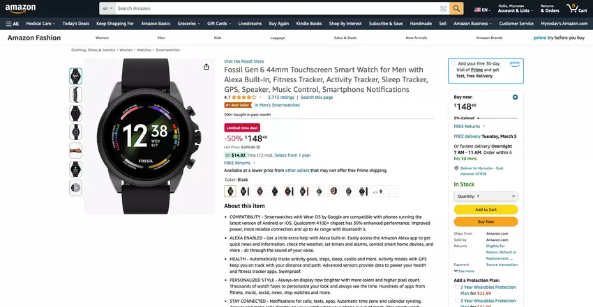 We hebben het over de Fossil Gen 6 met een 44mm kast en een zwart bandje. De gadget is nu verkrijgbaar op Amazon voor $122.37 $145.31, -16%.