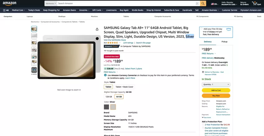- Samsung Galaxy Tab A9+, 64 GB - $155.72 $219.99, -29%.
