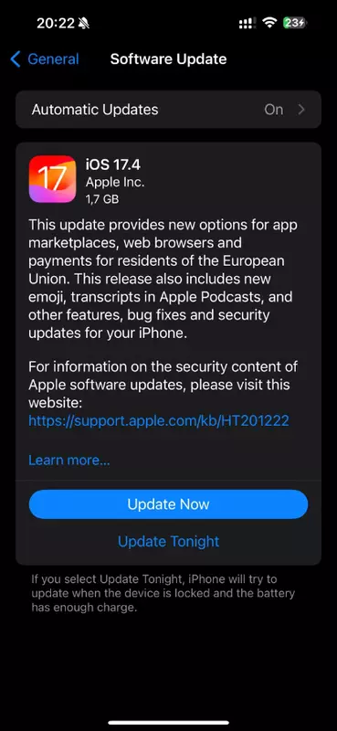 Daarnaast heeft Apple toestemming gegeven om gamestreamingdiensten (Xbox Cloud Gaming, Nvidia GeForce NOW, etc.) in de App Store te publiceren. Verder bevat iOS 17.4 nieuwe emoji, podcast-transcripts, een licht bijgewerkte Safari-browser, uitgebreide instellingen voor Stolen Device Protectio en nog veel meer. De ontwikkelaars hebben ook veel bugs in het systeem opgelost.