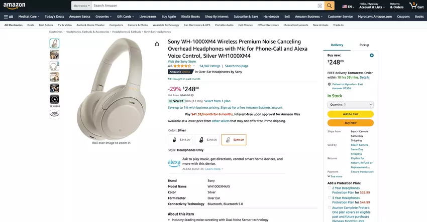 Sony WH-1000XM4 met ANC en een batterijlevensduur tot 30 uur is verkrijgbaar op Amazon voor $248 ($100 korting)