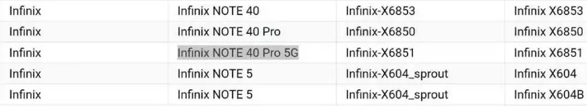 Infinix Note 40 Pro 5G verschenen in Google Play Console lijst in aanloop naar de lancering