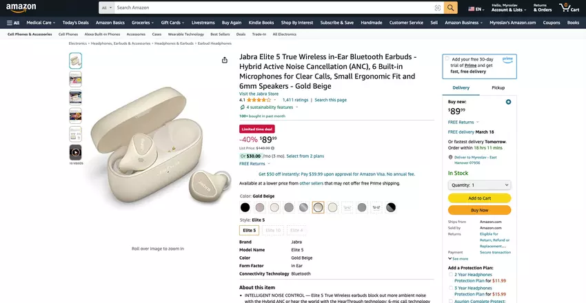 Deal voor beperkte tijd: Jabra Elite 5 met ANC en IP55-bescherming verkrijgbaar op Amazon voor $89 ($60 korting)