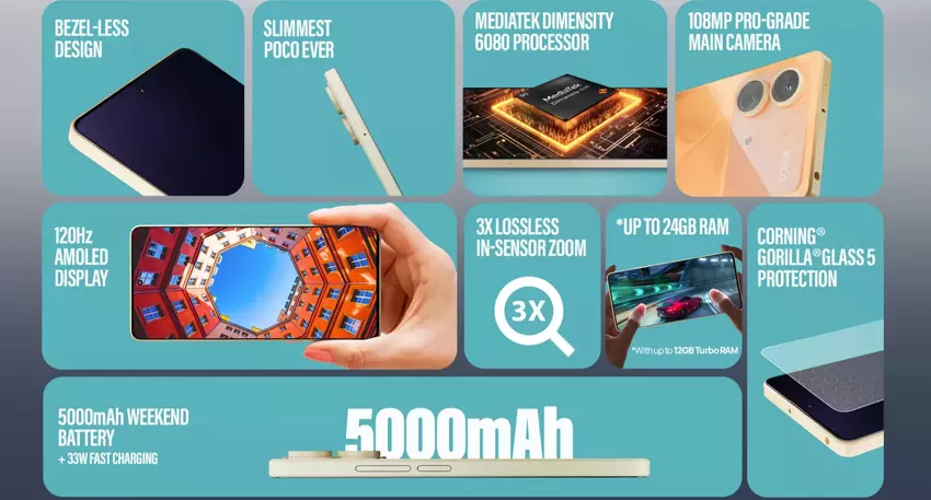 POCO X6 Neo: 120Hz AMOLED-scherm, 108 MP camera en IP54-bescherming voor $240