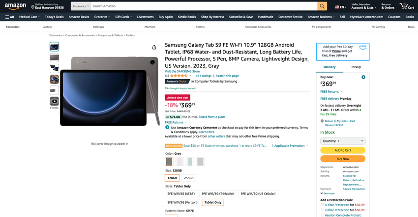 - Samsung Galaxy Tab S9 FE, 128 GB - check price on amazon.