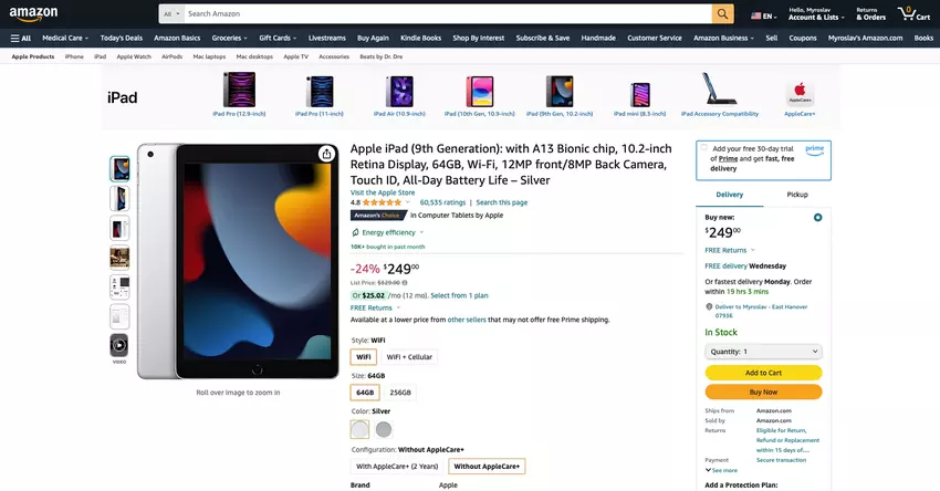 - iPad 9 (Wi-Fi + LTE), 64 GB - check price on amazon.